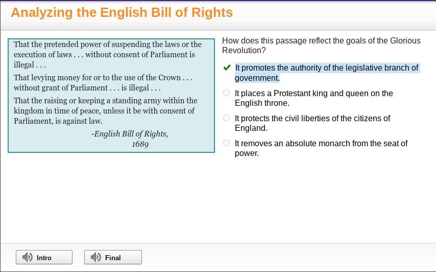 Answer: A.It promotes the authority of the legislative branch of government.