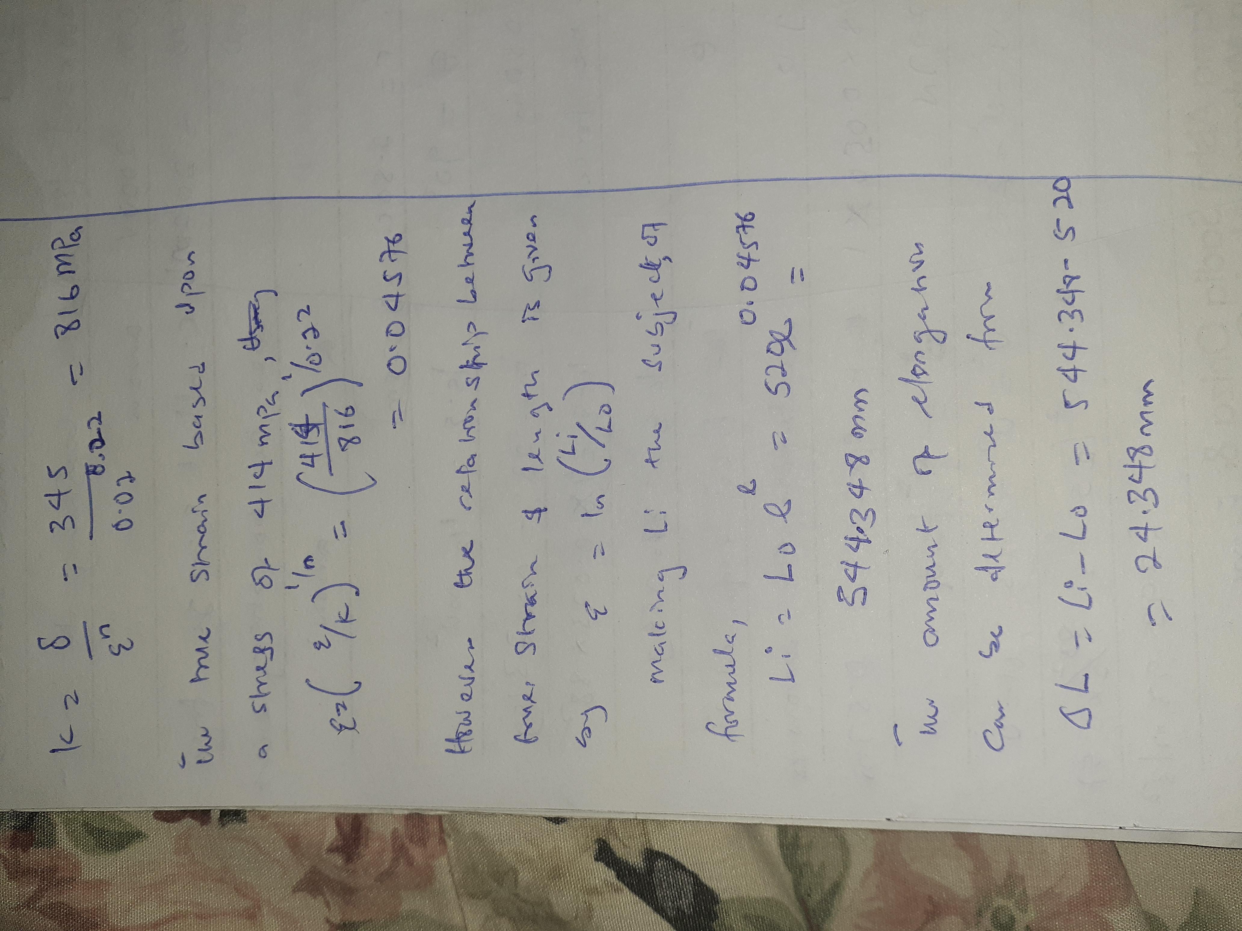 Change in L = Li - Lo = 544.348 - 520 change in L = 24.348mm.