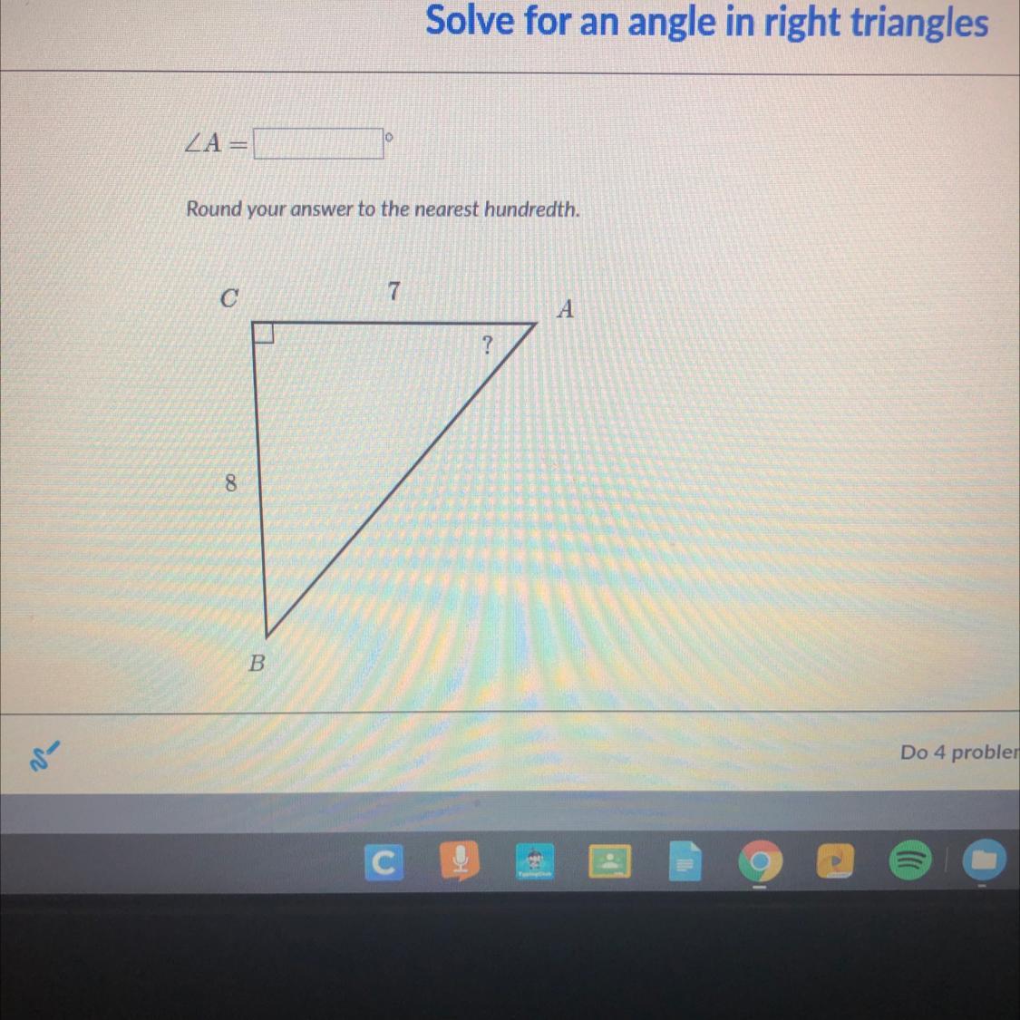 We use the tangent ratio, which involves opposite over adjacent to find x.