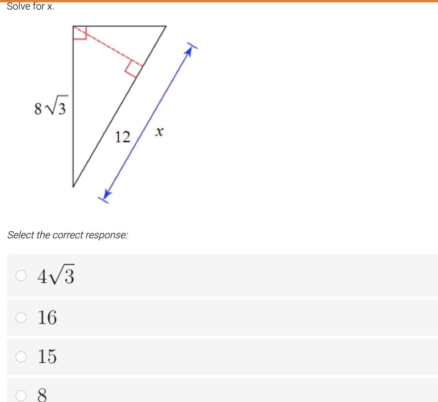 \dfrac{x}{8\sqrt{3}}=\dfrac{8\sqrt{3}}{12}