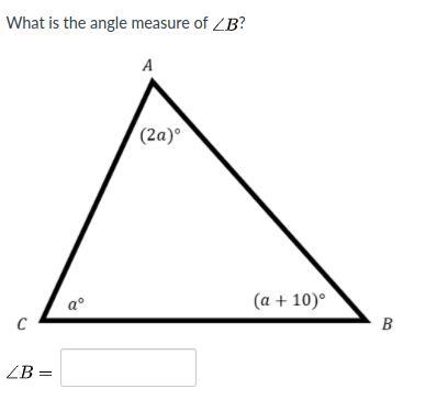 According to the Triangle Sum Theorem, all angles in triangle are sum of 180⁰. This means that m<a + m<b + m<c = 180⁰. You will first solve for a.