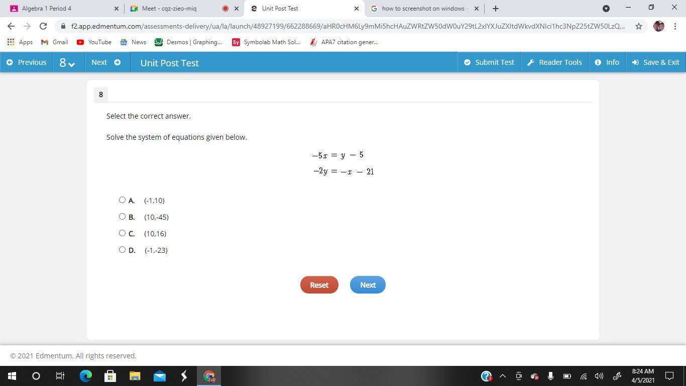 Since the system has two distinct solutions, the line and the curve meet at two distinct poibts9: (1,6) & (7,0)