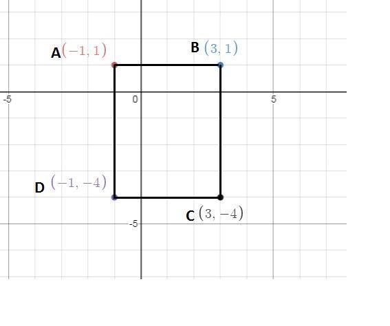 The vertices of a rectangle are (–1, 1), (3, 1), (–1, –4), and (3, –4).