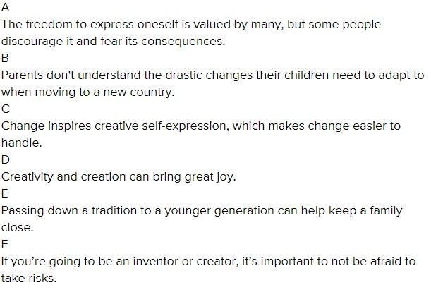 Options A and F are the two statements that describe the main themes in the story Daughter of invention.