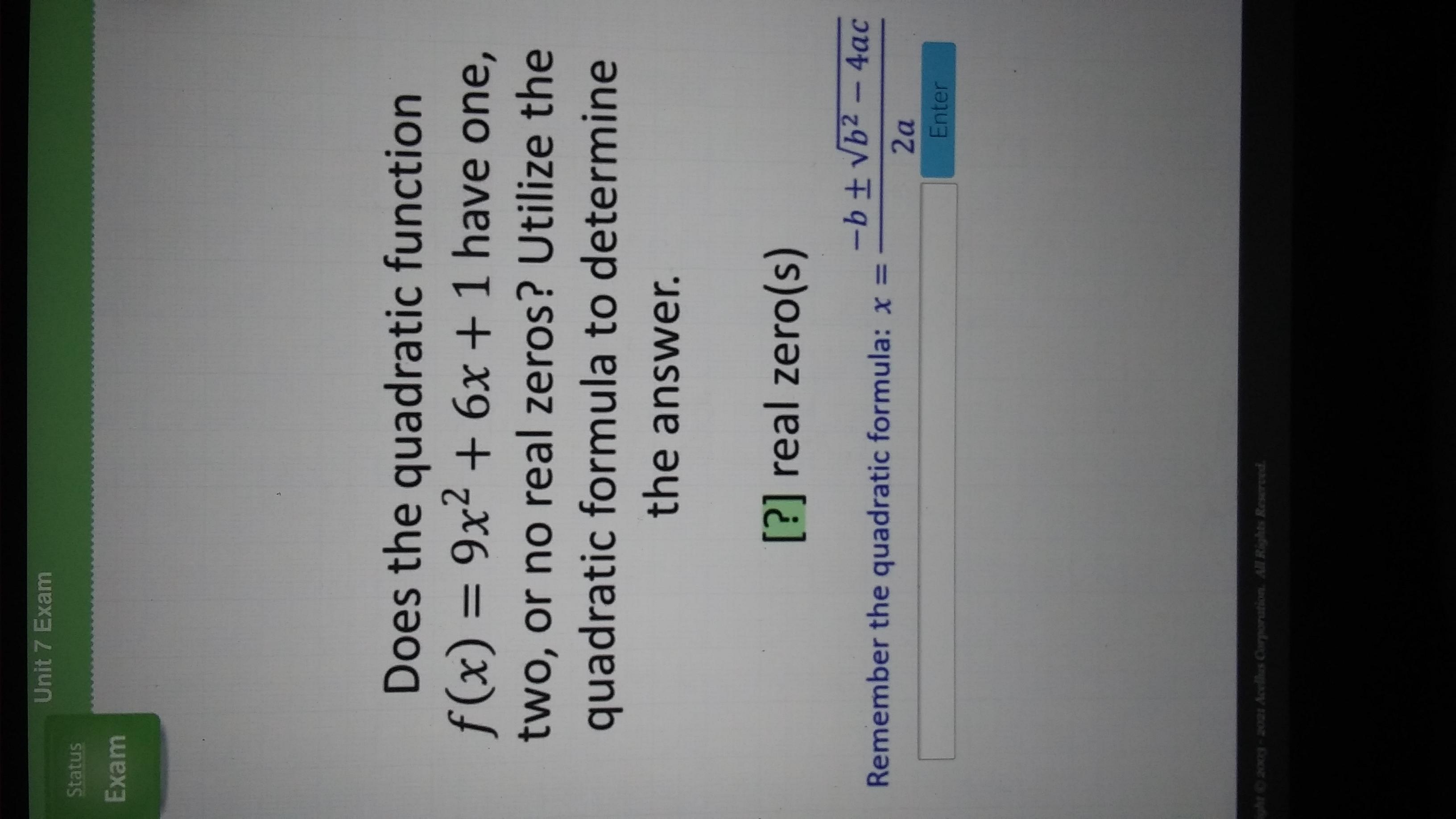 If the discriminant is equal to 0, there is one zero