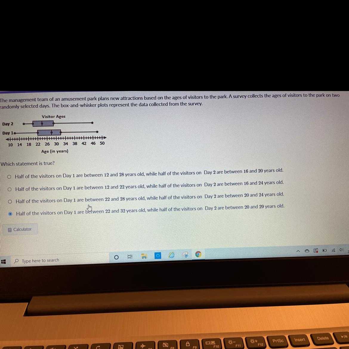 O Half of the visitors on Day 1 are between 12 and 28 years old, while half of the visitors on Day 2 are between 16 and 20 years old.