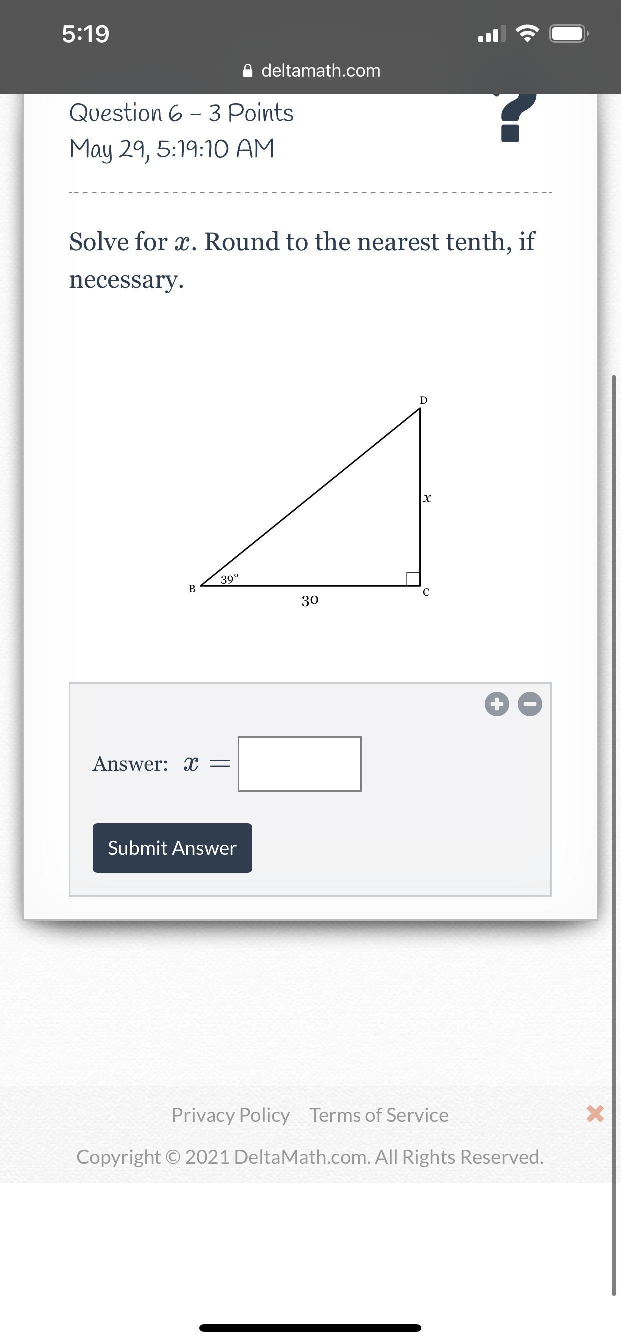 30*tan(39) = x