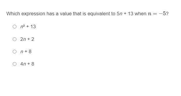 1. The shown equation has a value of negative twelve and so does the equation 4n+8
