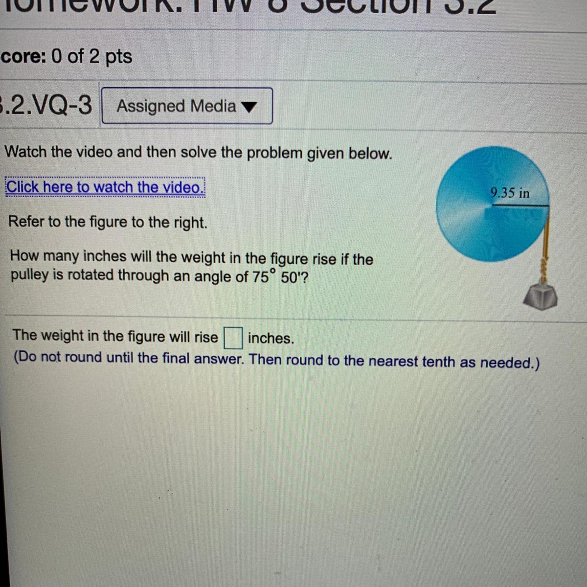 the circumference of the pulley is 9.35 x 2 x 3.14 = 58.718 inches.
