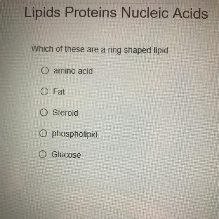 Answer:Steroids like cholesterol are lipids and have a ring structure