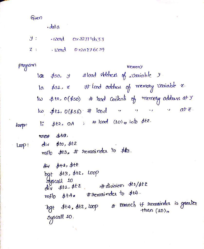 Please go to attachment for the loop program that examines the eight bytes in the words y and z. If a byte is the code for a decimal number, output it to the console. Otherwise, simply ignore it and examine the next byte.