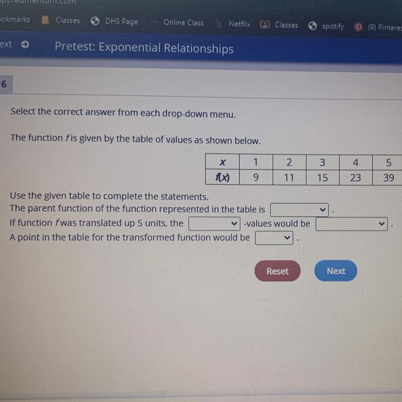 But, we notice that both the first and second differences have a common ratio. This is characteristic of an exponential function. The common ratio is 18/6 = 3, so the parent function is <u>3^x</u>