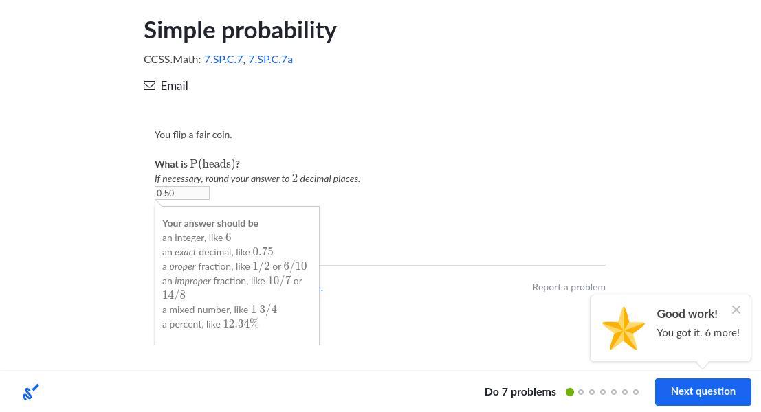 Hat is \text{P(heads})P(heads)start text, P, left parenthesis, h, e, a, d, s, end text, right parenthesis? If necessary, round y
