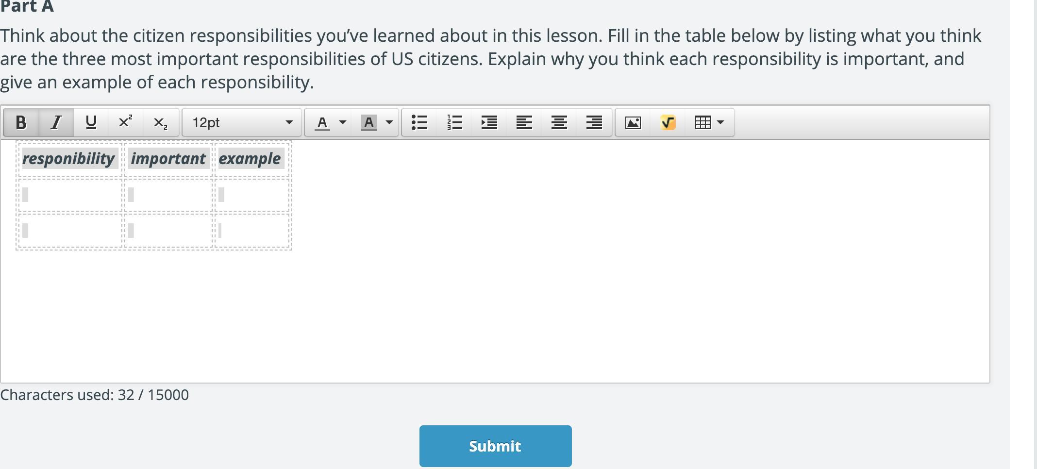 if so the responsibility is voting, the importance about it is that it’s important to vote because we have to have a say in what’s happening in out government, example is voting for the president