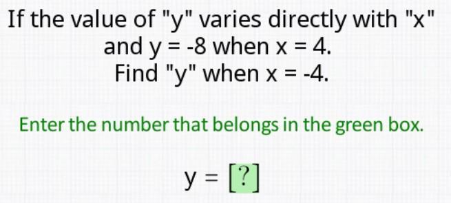 We know that y = -8 and x = 4 pair up together. Let's use these two values to find k