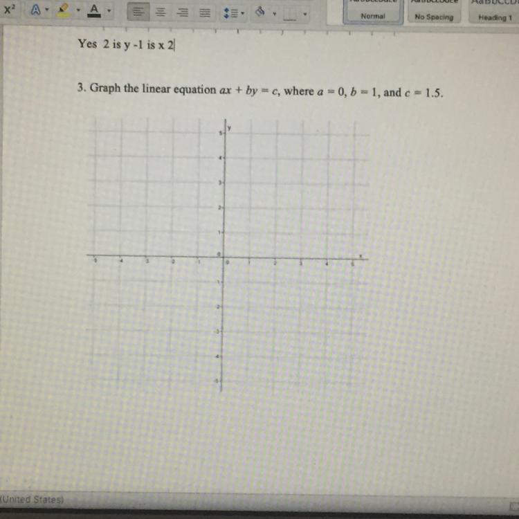 The equation ax + by = c becomes 0x + 1y = 1.5 when a = 0, b = 1 and c = 1.5 are substituted.