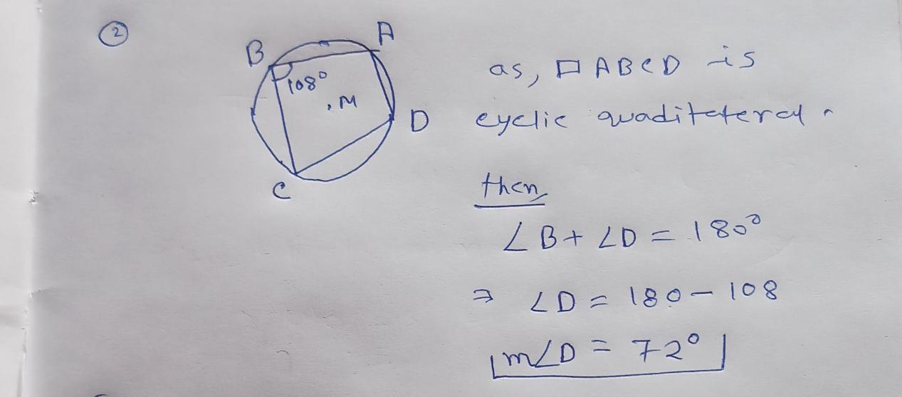 2. In circle M shown, points A, B, and C have been located such that m B 108 . Locate point D anywhere on the major arc that