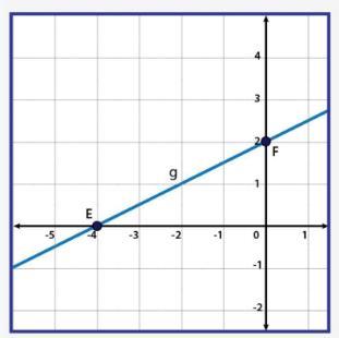 We conclude that the locations of E' and F' are E' (−8, 0) and F' (0, 4), and lines g and g' are parallel.