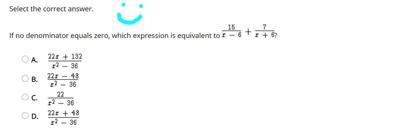 \frac{15(x + 6) + 7(x - 6)}{x^2 - 36}