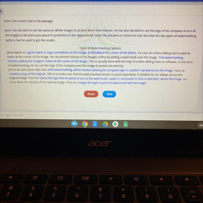 the images to be extra sure about its protection in the digital world. Select the phrases or sentences that describe the two types of watermarking
