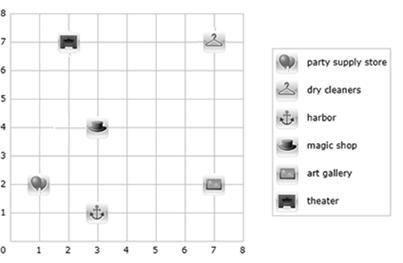 Thus, in order to move to the theater from dry cleaners, all we need is to count the unit on the x-axis from x = 7 to x = 2.
