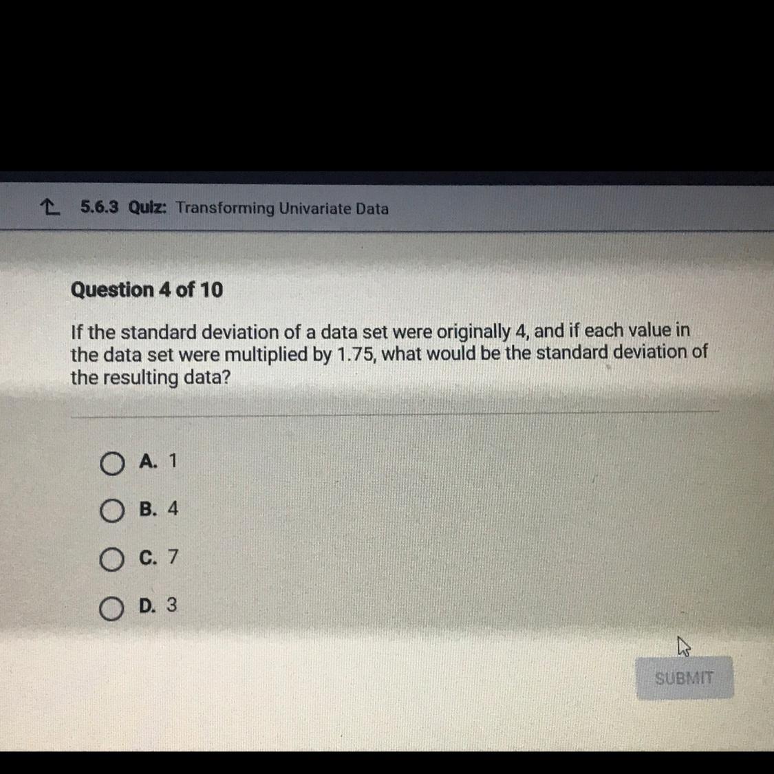 the data set were multiplied by 1.75, what would be the standard deviation of