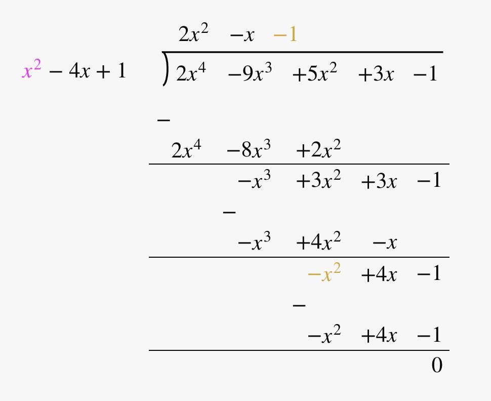 -1/2, 1, 2-√3, 2+√3 . . . all zeros