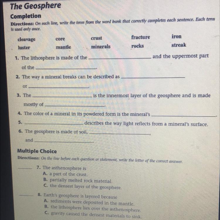 1. crust and mantle