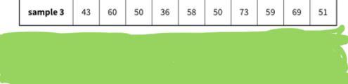 In statistics and probability theory, the median is the data value dividing the larger half from the lower half of a data sample, a population, or a probability distribution. For a data set, it may be thought of as "the middle" value. To find the median, place the numbers in value order and find the middle number. In this case, from smallest to greatest, the data list would be 36, 43, 50, 50, 51, 58, 59, 60, 69, 73. If there are an even number of individual data points, you need to find the two values that are located in the middle of the data plot, add them together, and divide their sum by two to get the median. Because there are 10 individual data values, that means you need to use the 5th and 6th values to find the median, which is 51 and 58.