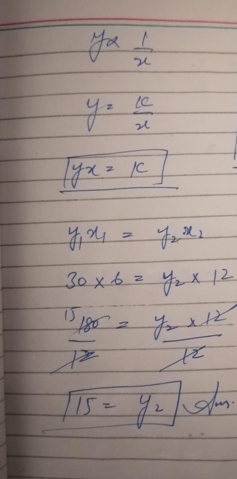 Y is inversely proportional to x when y=30 x=6 work out the value of y when x is 12
