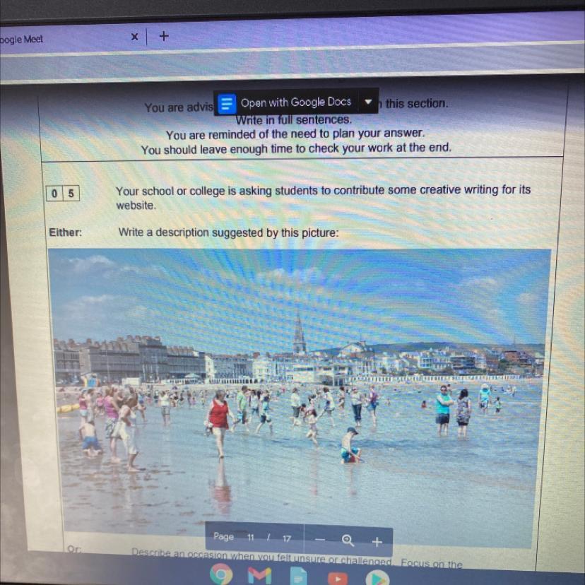 Young children stumble onto the moist sand, with small buckets and spades in their hands, they shout and talk in excitement. Damp sand is forced between their toes. Straight away, the young children put on their swimming costumes and are smothered with thick white sun screen, to protect them from the bright sun. Children running towards the shoreline; their parents struggle onto the sand, loaded like camels with everything they will need for their day. Sandwiches, cold drinks, wind breakers, towels all bagged up and slung over both shoulders.