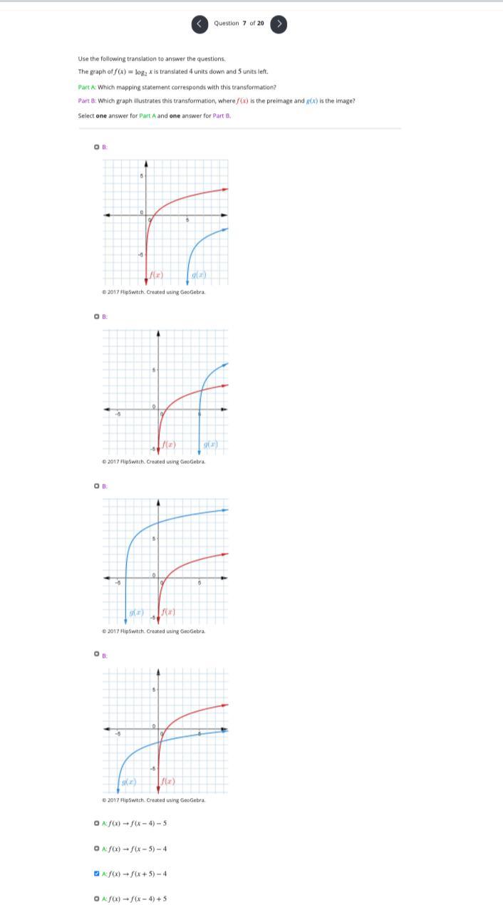 four units downwards and five units to the left. Then, we find that:
