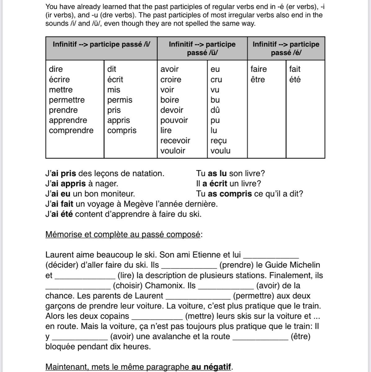 For example, finir in passé composé would become fini.