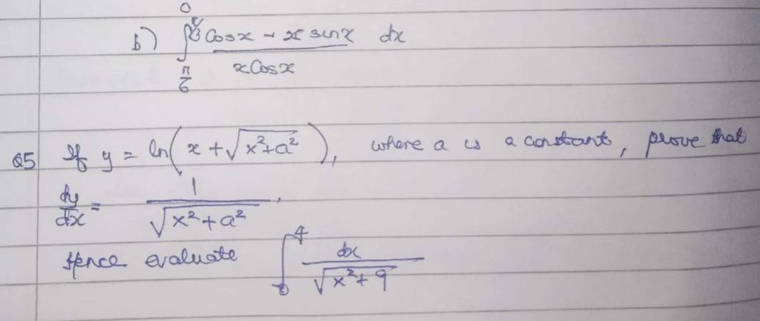 ![y = \ln\left(x + \sqrt{x^2+a^2}\right)\\\\\\\frac{dy}{dx} = \frac{d}{dx}\left[\ln\left(x + \sqrt{x^2+a^2}\right)\right]\\\\\\\frac{dy}{dx} = \frac{1}{x+\sqrt{x^2+a^2}}*\frac{d}{dx}\left[x + \sqrt{x^2+a^2}\right]\\\\\\\frac{dy}{dx} = \frac{1}{x+(x^2+a^2)^{1/2}}*\left(1 + 2x*\frac{1}{2}(x^2+a^2)^{-1/2}\right)\\\\\\\frac{dy}{dx} = \frac{1}{x+(x^2+a^2)^{1/2}}*\left(1 + x*\frac{1}{(x^2+a^2)^{1/2}}\right)\\\\\\\frac{dy}{dx} = \frac{1}{x+W}*\left(1 + x*\frac{1}{W}\right)\\\\\\](https://tex.z-dn.net/?f=y%20%3D%20%5Cln%5Cleft%28x%20%2B%20%5Csqrt%7Bx%5E2%2Ba%5E2%7D%5Cright%29%5C%5C%5C%5C%5C%5C%5Cfrac%7Bdy%7D%7Bdx%7D%20%3D%20%5Cfrac%7Bd%7D%7Bdx%7D%5Cleft%5B%5Cln%5Cleft%28x%20%2B%20%5Csqrt%7Bx%5E2%2Ba%5E2%7D%5Cright%29%5Cright%5D%5C%5C%5C%5C%5C%5C%5Cfrac%7Bdy%7D%7Bdx%7D%20%3D%20%5Cfrac%7B1%7D%7Bx%2B%5Csqrt%7Bx%5E2%2Ba%5E2%7D%7D%2A%5Cfrac%7Bd%7D%7Bdx%7D%5Cleft%5Bx%20%2B%20%5Csqrt%7Bx%5E2%2Ba%5E2%7D%5Cright%5D%5C%5C%5C%5C%5C%5C%5Cfrac%7Bdy%7D%7Bdx%7D%20%3D%20%5Cfrac%7B1%7D%7Bx%2B%28x%5E2%2Ba%5E2%29%5E%7B1%2F2%7D%7D%2A%5Cleft%281%20%2B%202x%2A%5Cfrac%7B1%7D%7B2%7D%28x%5E2%2Ba%5E2%29%5E%7B-1%2F2%7D%5Cright%29%5C%5C%5C%5C%5C%5C%5Cfrac%7Bdy%7D%7Bdx%7D%20%3D%20%5Cfrac%7B1%7D%7Bx%2B%28x%5E2%2Ba%5E2%29%5E%7B1%2F2%7D%7D%2A%5Cleft%281%20%2B%20x%2A%5Cfrac%7B1%7D%7B%28x%5E2%2Ba%5E2%29%5E%7B1%2F2%7D%7D%5Cright%29%5C%5C%5C%5C%5C%5C%5Cfrac%7Bdy%7D%7Bdx%7D%20%3D%20%5Cfrac%7B1%7D%7Bx%2BW%7D%2A%5Cleft%281%20%2B%20x%2A%5Cfrac%7B1%7D%7BW%7D%5Cright%29%5C%5C%5C%5C%5C%5C)