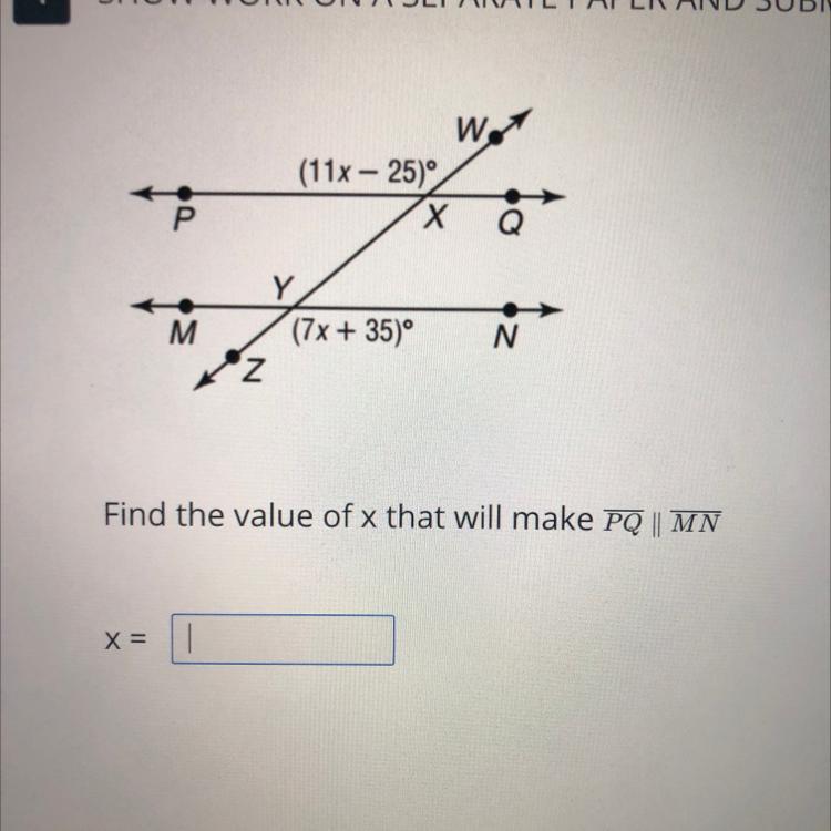 ∠ MYX = ∠ PXW = 11x - 25 ( corresponding angles ) , so