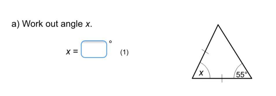 We know that the base angles in an iscoceles triangle are the same, so the angle that has not been drawn is 55°.