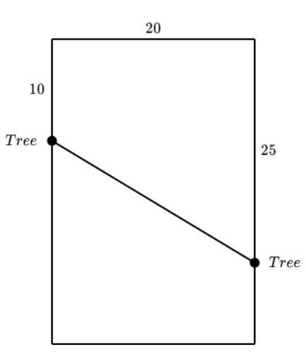 The second figure attached identifies a right triangle whose hypotenuse, c, is the smallest length that the clothesline can measure; and the legs measure 20m, and 20m - 10m = 15m.
