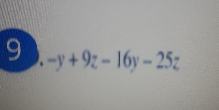 Will give brainliest please help i need help with simplifying -y+9z-16y-25z