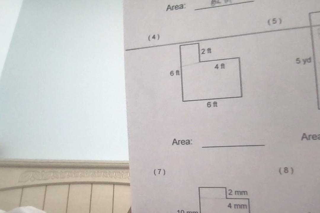 For this irregular shape we would split it into a square with a side length of 2ft and a rectangle with a length of 6ft and a width of 4ft ( width was found subtracting total height of irregular figure (6ft) from height of square (2ft) 6ft - 2ft = 4ft so the width would be 4ft)