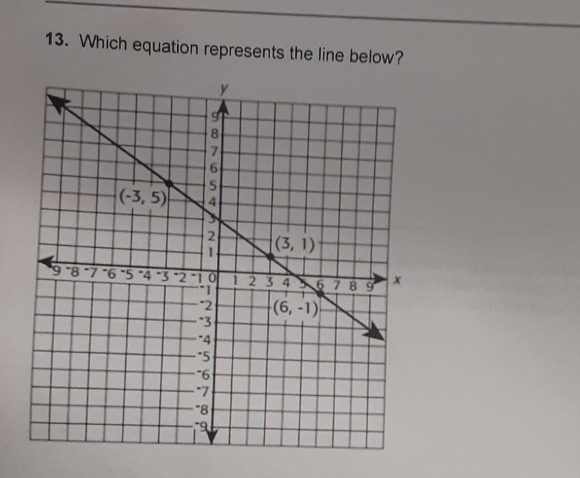 If we take the points (-3,5) and (3,1), then: y₂ = 1; y₁ = 5; x₂ = 3; x₁ = -3