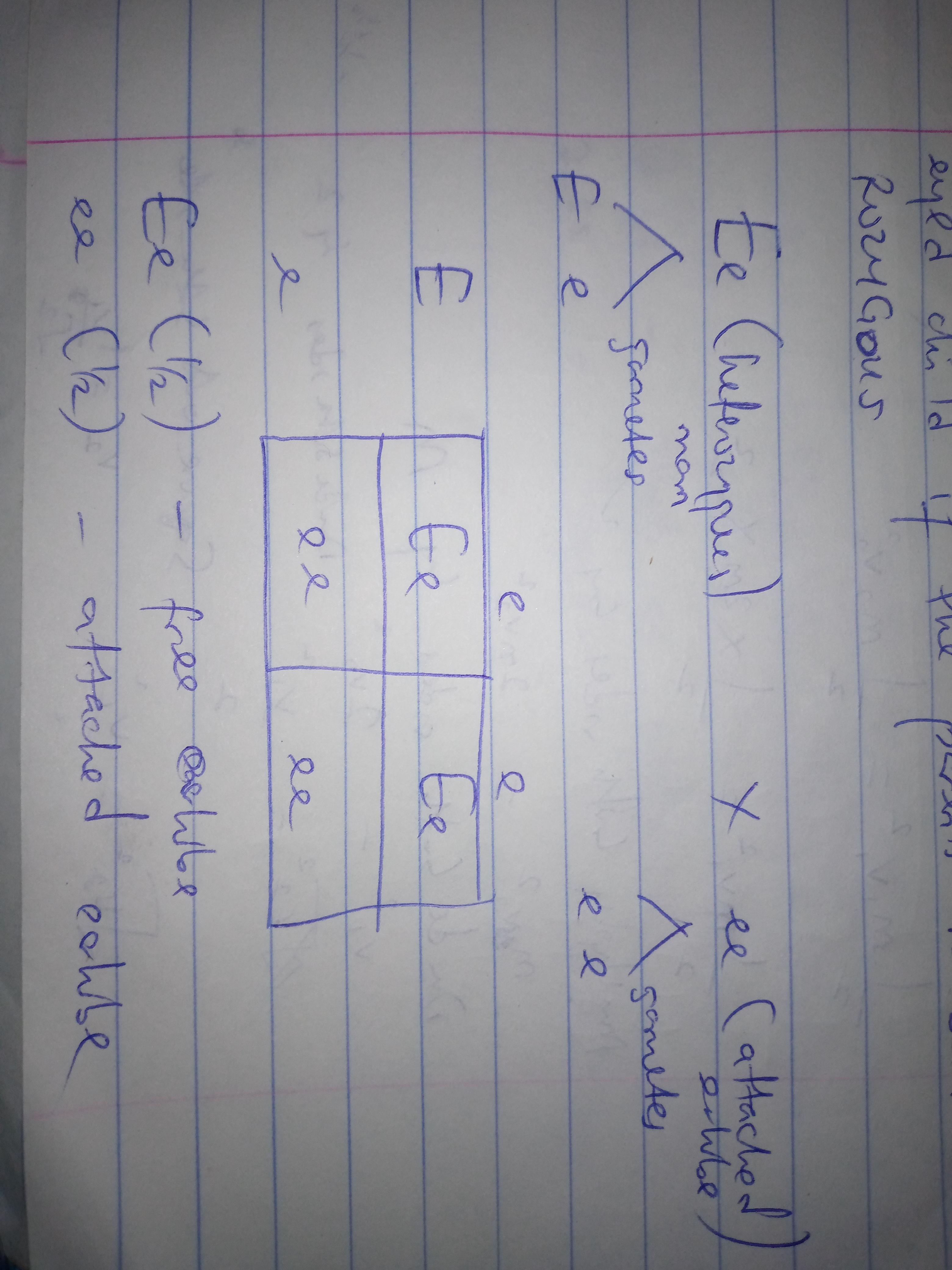 - Children with genotype Ee (1/2) will have free earlobes