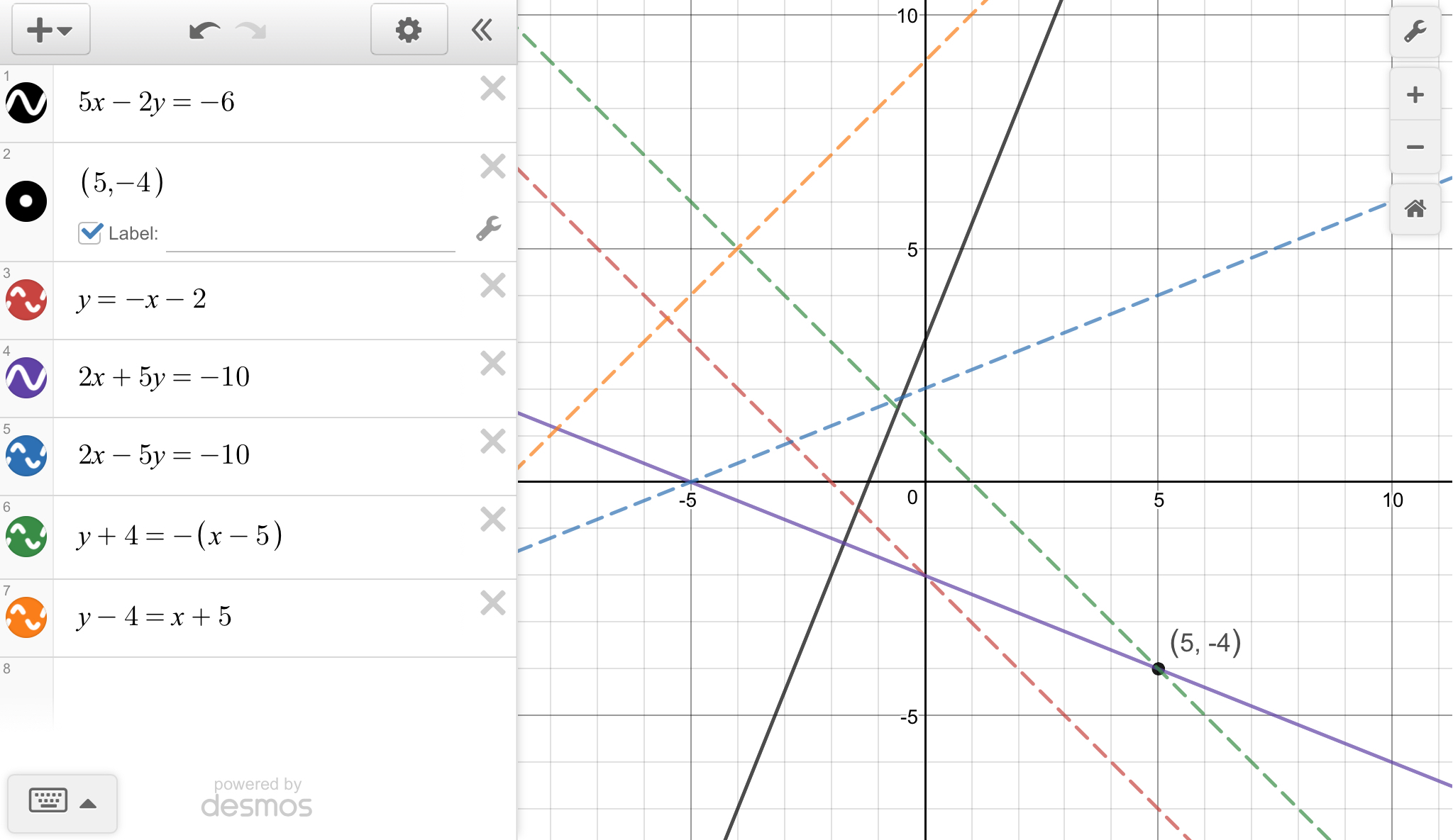 2x + 5y = -10