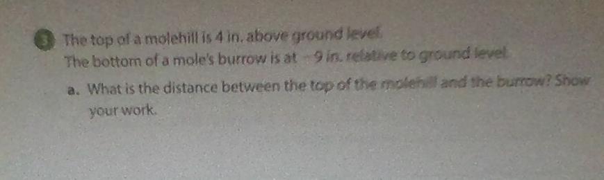 Draw a vertical number line. Make sure 4, 0 and -9 are marked on it.