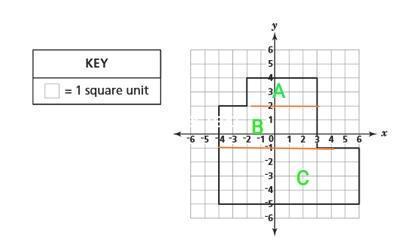 The area of the irregular figure = Area of A + Area of B + Area of C
