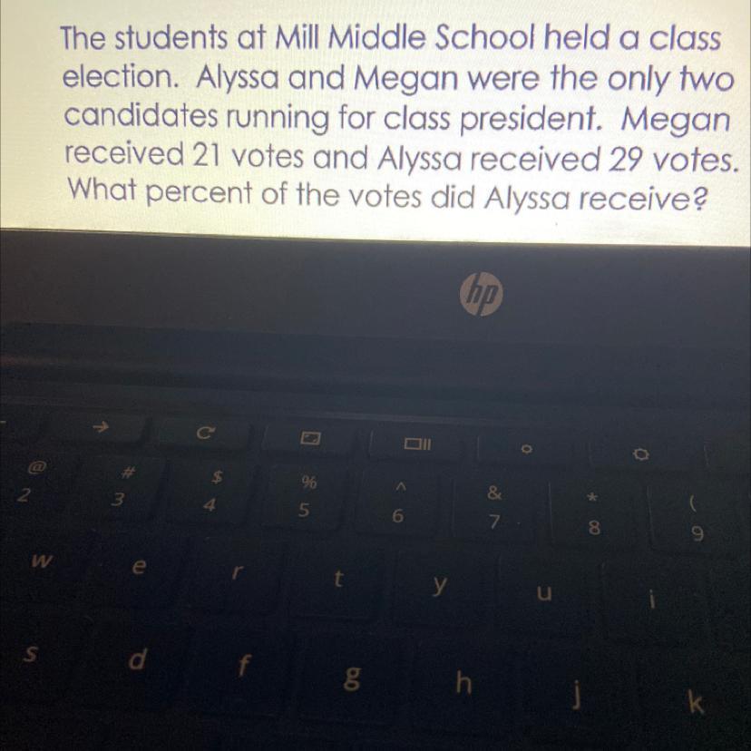 Therefore, Alyssa received <u>58%</u> of the total votes.