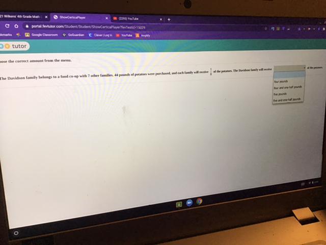 44 pounds * 0.125 = 5.5 pounds of potatoes