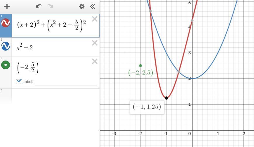 f(x) = √((x -(-2))² +((x² +2)-5/2)²)