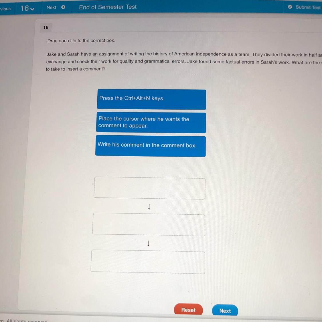 decided to exchange and check their work for quality and grammatical errors, Jake found some factual errors in Sarah's work What are the steps that Jake need to take to insert a comment?
