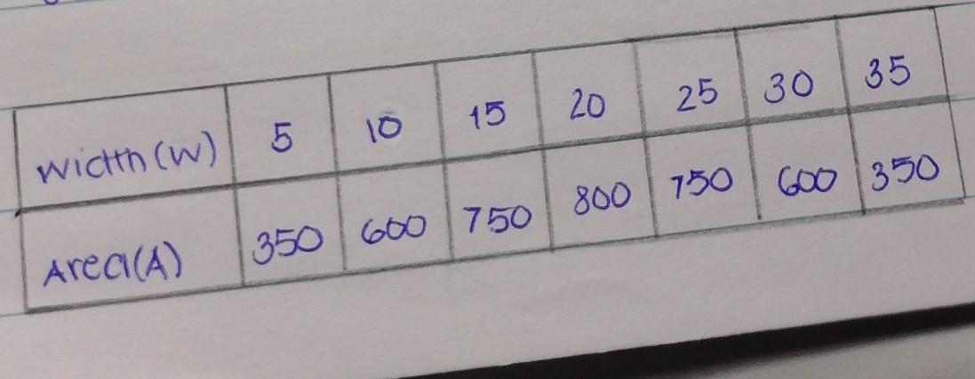 The question requires us to plot a graph of width on the x axis and area on the y axis.
