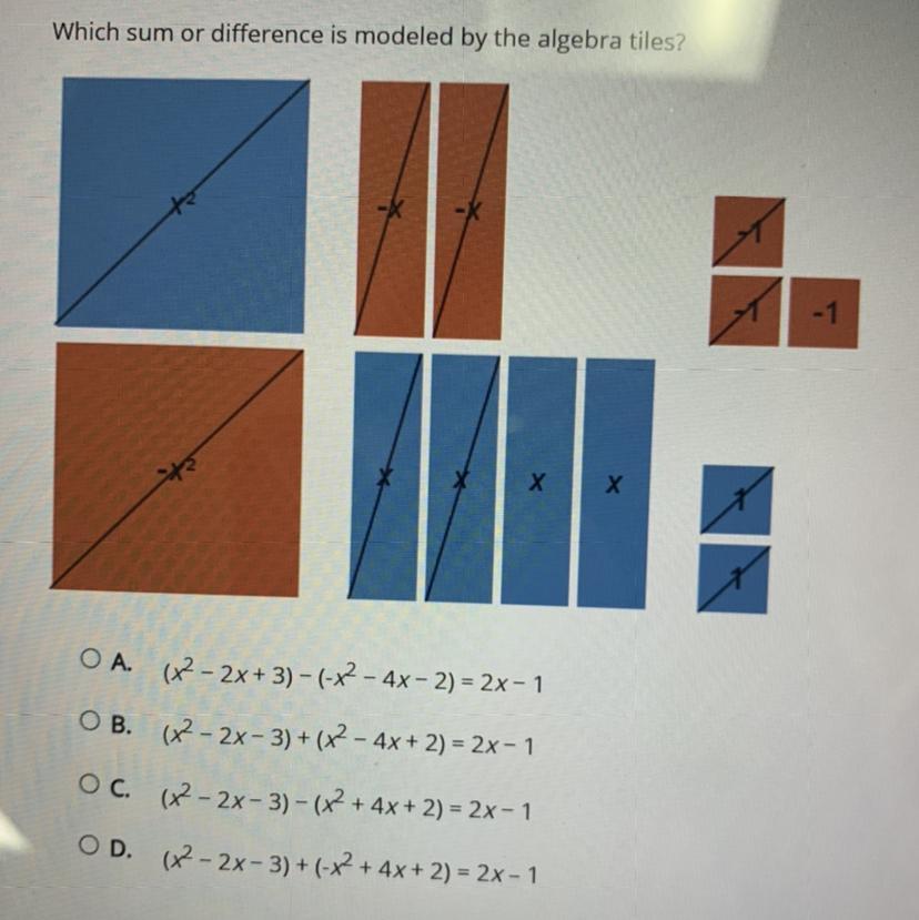 (x² -2x -3) +(-x² +4x +2) . . . . . matches D